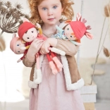 Vyšívané oči, ústa i pihy, měkké textilie a kvalitní zpracování pro klidné hraní i usínání.
