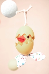 Díky silikonové skořápce je vajíčko příjemné na dotek a lze jej snadno čistit pouhým otřením. Praktické poutko umožňuje rychlé zavěšení kamkoli potřebujete. Kombinace textilu a silikonu podporuje smyslový rozvoj a jemnou motoriku.