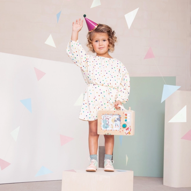 Tato originální hrací skříňka od Lilliputiens je navržena pro nejmenší objevitele. Stačí otočit ovládacím tlačítkem a malý orchestr spustí veselou melodii, během níž se aktivují i ilustrace. Děti tak přirozeně procvičují koordinaci oko–ruka, sluch i zrak.