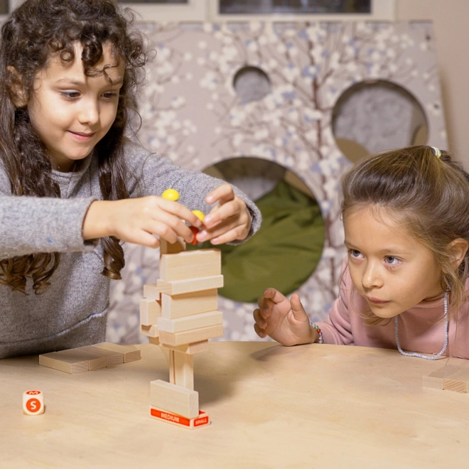Legrační palác nabízí zábavu pro děti i dospělé. Hráči si staví kostky proti sobě a snaží se dostat svého stavebnici nejvýše.