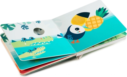 S touto knihou si děti vytvoří vlastní příběhy z džungle. Při stlačení srsti zvířátka kniha vydá odpovídající zvuk, což stimuluje sluch, smyslové vnímání a představivost. Kniha je vyrobena z pevného materiálu, vhodného pro malé děti.