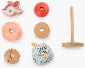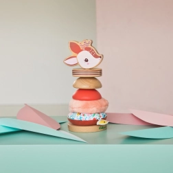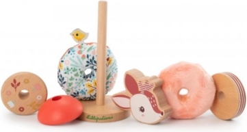 Originální stohovací hračka Lilliputiens s motivem jelínka Stella potěší děti od 12 měsíců: kombinuje dřevo a textil, rozvíjí jemnou motoriku i kreativitu a díky stabilnímu podstavci se snadno skládá. Obsahuje 4 dřevěné a 2 textilní díly; rozměry 8 × 8 × 18,8 cm. Textilní části lze prát na 30 °C (jemný cyklus).
