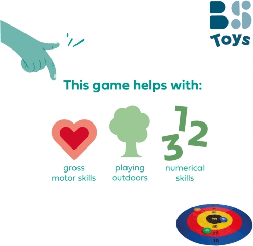 Hra podporuje motorické dovednosti, koordinaci oko–ruka a základní matematiku při sčítání bodů. Je ideální pro školky, školní družiny, tábory i domácí hraní na zahradě.