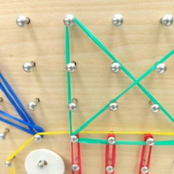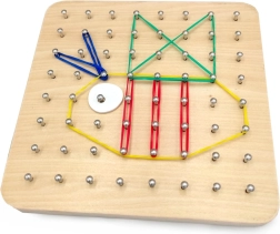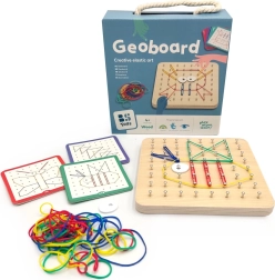 Děti mohou tvořit základní geometrické tvary, učit se symetrii a vzory, nebo navrhovat jedinečné obrazy. Geoboard je také skvělým nástrojem pro výuku počítání a měření.