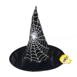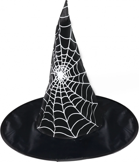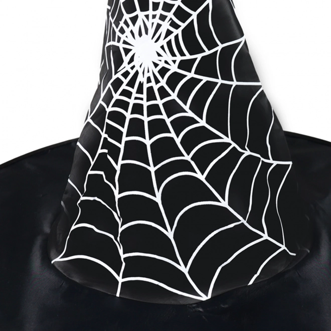Stylový dětský klobouk pro malé čaroděje a čarodějnice s výraznou bílou pavučinou na černém podkladu. Ideální na Halloween, karneval i tematické oslavy – lehký, pohodlný a nepřehlédnutelný doplněk kostýmu.