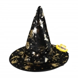 Dodejte dětskému kostýmu tu pravou kouzelnou tečku. Lehký a pohodlný klobouk v černé barvě je posetý zlatými dekoracemi, které se na světle efektně třpytí. Skvěle sedí a snadno se kombinuje s pláštěm i maskou.