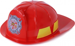 Červená hasičská helma s odznakem dodá hře na hasiče realistický rozměr a ochrání při akčním hraní.