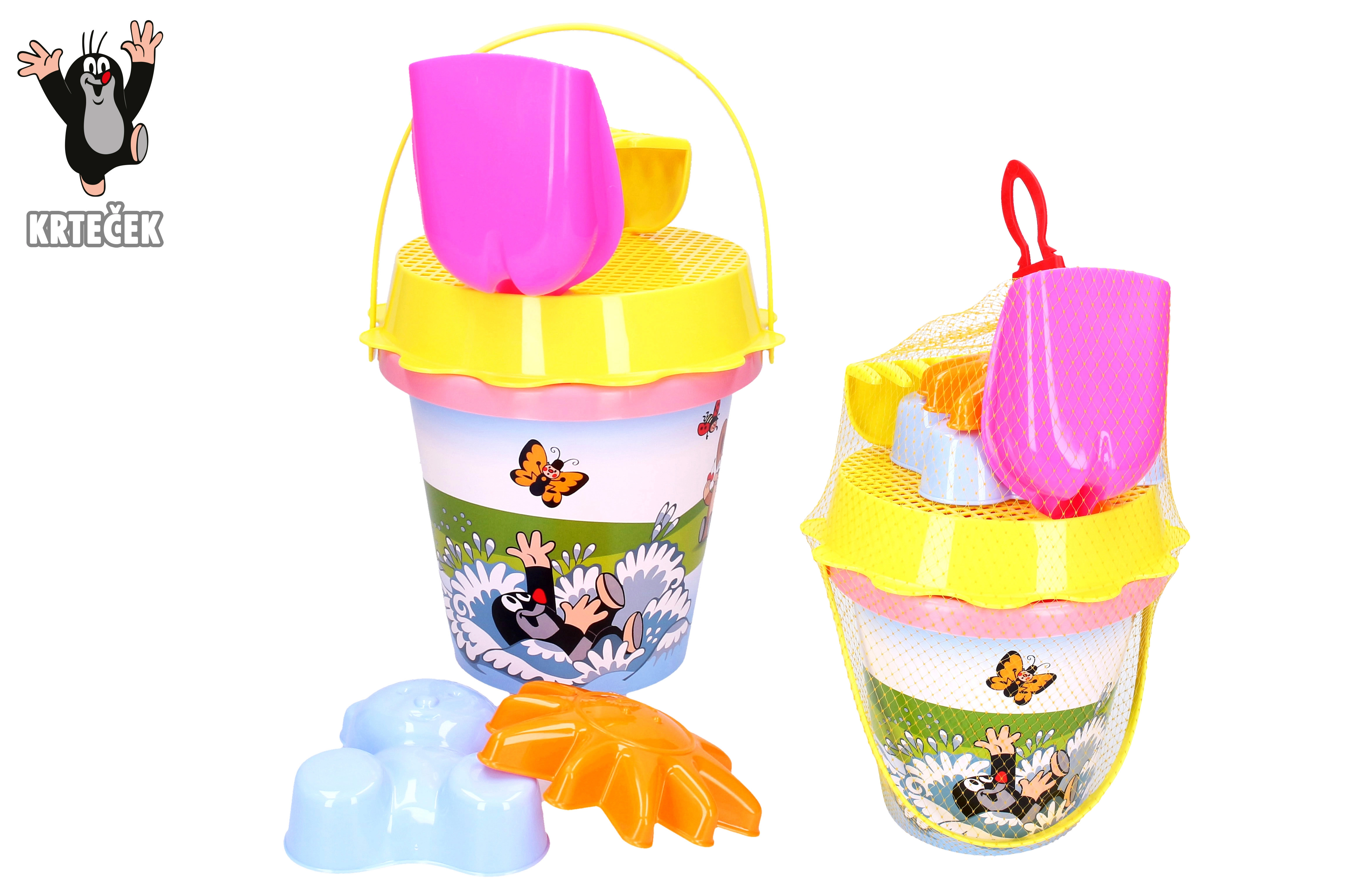 Růžová sada na písek s motivem KRTEČEK potěší každého malého stavitele. Obsahuje kyblík 1,5 l, sítko, lopatku, hrábě a 2 formičky – ideální pro stavění hradů a tvorbu báboviček. Vhodné pro děti od 3 let.