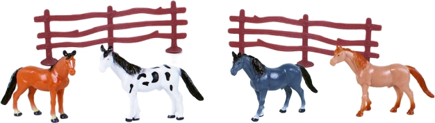 Objevte kouzlo světa koní s touto zábavnou sadou pro děti. Čtyři různě tvarovaní koníci a dva díly ohrady podněcují kreativní hru, vytváření vlastních farmářských scén a rozvíjejí vztah k přírodě a zvířatům. Díky kompaktním rozměrům je sada ideální na cesty i na doma.
