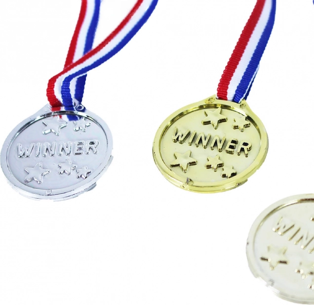 Oceňte své kamarády opravdovými medailemi! Sada obsahuje zlatou, stříbrnou a bronzovou medaili, všechny na praktické šňůrce.