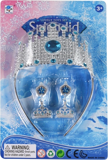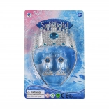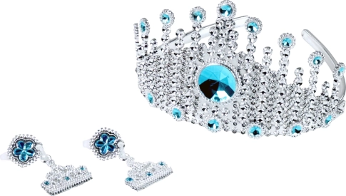Nádherná korunka pro malé princezny, inspirovaná Zimním královstvím, je perfektním doplňkem každého kostýmu. Set zahrnuje korunku a náušnice, zdobené modrými prvky pro kouzelný vzhled.