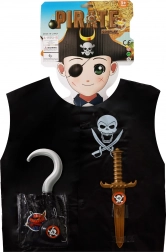 Pirátí karnevalová vesta pro děti je ideálním doplňkem pro všechny malé dobrodruhy! Obsahuje plastovou dýku, hák a plášť, které potěší každého malého piráta.