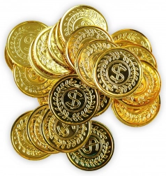 Dopřejte dětem i dospělým porci herní zábavy se sadou zlatých mincí, které vypadají efektně a díky plastovému provedení jsou lehké, bezpečné a odolné. Lesklý povrch a reliéfní motiv dolaru dodají vašim hrám i dekoracím atraktivní vzhled.