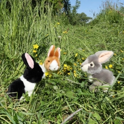 Vyberte si z šedé, černobílé nebo hnědobílé varianty. Každý králík je měkoučký společník pro hraní i usínání.