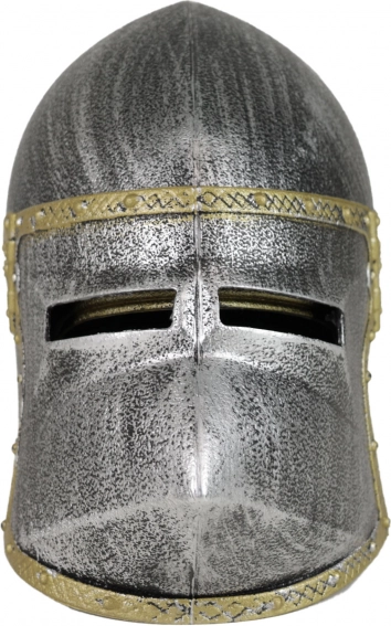 Stříbřitě šedé provedení se zlatými prvky dodává přilbě historický vzhled, ideální pro karnevaly i domácí rytířská dobrodružství.