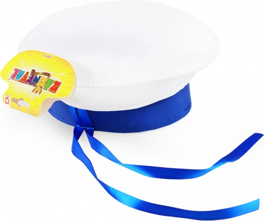 Stylová dětská námořnická čepice pro malé dobrodruhy. Elegantní provedení se saténovou stuhou a bílým nápisem na přední straně dodává autentický námořnický vzhled. Ideální na kostýmy, oslavy i letní výlety u vody.