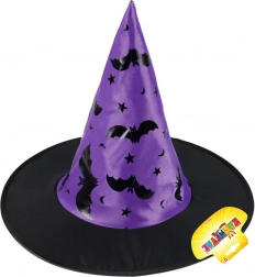 Proměňte svůj dětský kostým v dokonalé kouzelnické představení! Tento čarodějnický klobouk s motivem netopýrů zaujme na první pohled a skvěle doplní outfit na halloweenský večírek, školní besídku nebo maškarní bál.