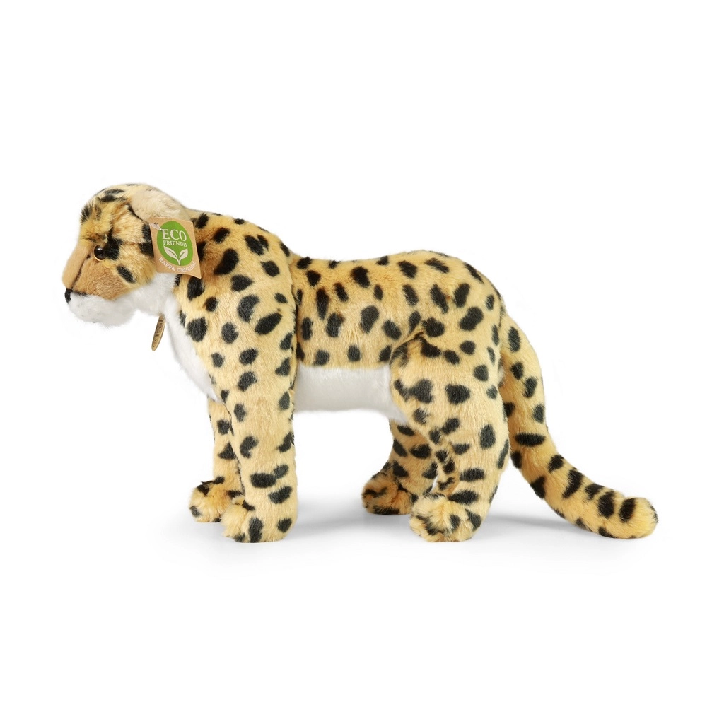 Roztomilý plyšový gepard o velikosti 30 cm je vyroben z měkkého materiálu s realistickým vzorem a ručním zpracováním. Díky ECO‑FRIENDLY výplni z recyklovaných PET lahví potěší nejen děti, ale i rodiče, kteří myslí na přírodu. Kvalitní plyš a bezpečné provedení pro nejmenší z něj dělají ideálního společníka na mazlení i hraní.