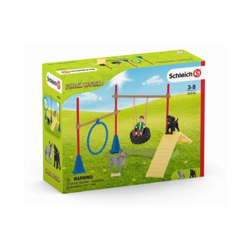 Psí hřiště Schleich z kolekce Farm World nabízí zábavnou agility dráhu s obručí, houpačkou–kladinou a kužely s tyčí. Díky realistickým detailům figurek dítě snadno vstoupí do světa farmy a vytvoří si vlastní příběhy plné radosti a pohybu.