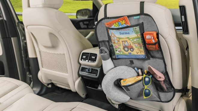 Tento organizér udrží vše pod kontrolou během krátkých i dlouhých jízd. Průhledné okénko pro tablet poskytuje čistý obraz a zároveň chrání displej. Díky dvěma držákům na láhve, síťovým kapsám a extra kapse na drobnosti budete mít vše potřebné po ruce a přehledně uspořádané.