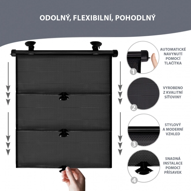 Praktická rolovací sluneční clona do auta poskytuje účinnou ochranu před slunečním zářením pro děti i dospělé. Díky přísavkám pevně drží na okně a její kompaktní rolovací mechanismus umožňuje rychlé stažení jedním tlačítkem. Ideální na cesty, pro pohodlnější a bezpečnější jízdu bez oslnění.