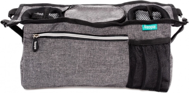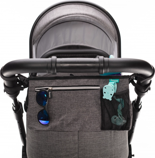 Praktický a přehledný organizér na kočárek v elegantní šedé barvě usnadní každý výlet s miminkem. Nabízí velkou zipovou kapsu, síťovanou kapsičku na telefon pro rychlý přehled, dvě držáky na nápoje a prostornou středovou komoru na zip. Díky rychlému uchycení na suchý zip jej snadno připevníte na většinu kočárků.