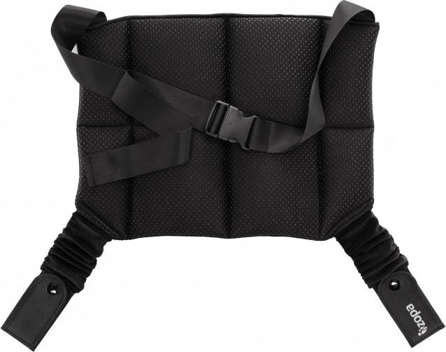Nastavitelné popruhy a přezka umožní rychlé připnutí k autosedadlu a přizpůsobení různým postavám i typům vozidel.