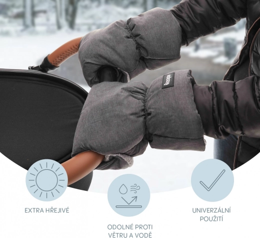 Rukavice jsou kompatibilní s většinou kočárků – od modelů se spojenou rukojetí až po golfové kočárky. Díky univerzálnímu provedení jsou ideální volbou pro každodenní zimní vycházky.