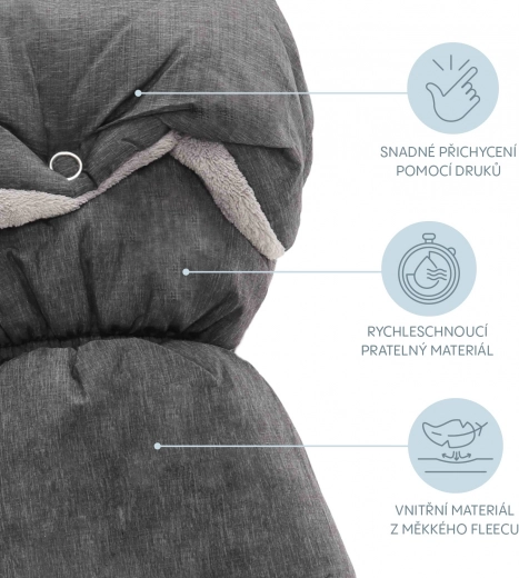 Hledáte praktické řešení, jak mít při procházkách v zimě stále teplé ruce? Tyto univerzální rukavice na kočárek se snadno přichytí pomocí druků a spolehlivě ochrání před větrem i vlhkostí. Vnitřní fleece je mimořádně příjemný na dotek a zajišťuje extra hřejivost po celou dobu používání.