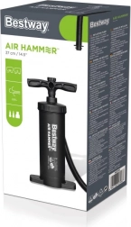Praktická ruční pumpa Bestway Air Hammer o délce 37 cm pro rychlé nafukování i vyfukování matrací, člunů, hraček či míčů. Nabízí obousměrné čerpání pro stálý průtok vzduchu při pohybu nahoru i dolů, objem 2,8 l na cyklus, odolnou konstrukci a flexibilní hadici. V balení jsou 3 univerzální adaptéry pro většinu ventilů.