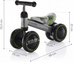 Odrážedlo pro děti Army je ideální pro malé dobrodruhy, kteří se učí vyvážit a koordinovat pohyby, díky odolné kovové konstrukci a pohodlnému polstrovanému sedátku.