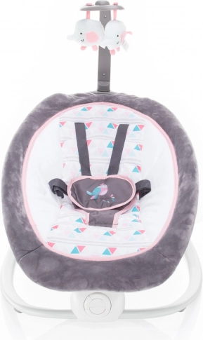 3bodový bezpečnostní pás zajišťuje, že vaše dítě bude v lehačce bezpečně upevněno. Lehačku můžete využít jako kolébku s rytmickým pohybem, který děťátko uklidňuje a připomíná mu pocit bezpečí z maminky. Lehačka nabízí režim zklidňujících vibrací a hrací mechanismus s melodiemi s regulovatelnou hlasitostí, což přispívá k příjemné zábavě.