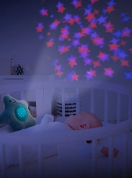 Tato kouzelná plyšová hračka promění každý dětský pokoj ve vesmírný zážitek. Projektor mění barvy a plocha se promění v kouzelnou hvězdnou oblohu. Kromě vizuálního vjemu poskytuje hračka uklidňující zvuky a melodie, které podporují klidný spánek vašich dětí.