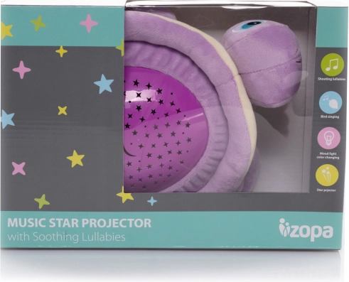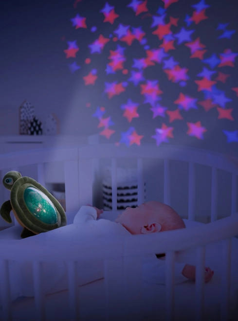 Plyšová želva je ideálním společníkem pro vaše děti, který se postará o klidné spaní a spoustu zábavy během dne. Světelný projektor promění temný strop v hvězdnou oblohu, která mění barvy.