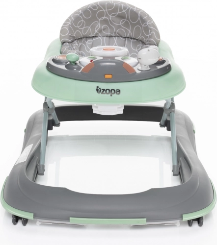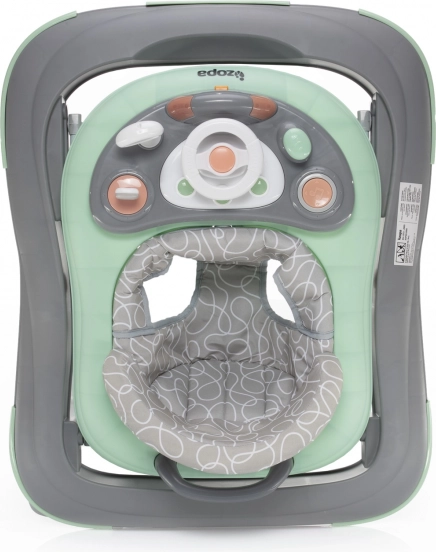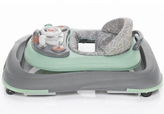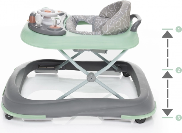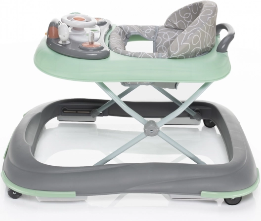 Stylové dětské chodítko Fiesta v kombinaci šedé a mint barvy podpoří první krůčky vašeho miminka bezpečně a hravě. Nabízí nastavitelnou výšku sedátka ve 3 polohách, odnímatelný interaktivní pultík se světly, zvuky a melodiemi a stabilní konstrukci s brzdicími bloky proti pádu ze schodů. Díky moderním pastelovým barvám skvěle zapadne do každého interiéru.