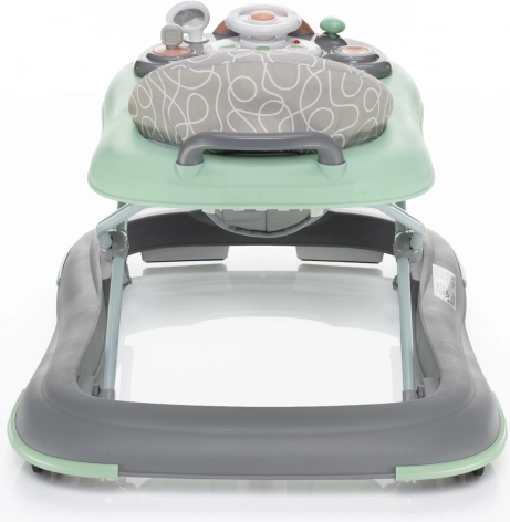 Odnímatelný interaktivní pultík se světýlky, zvuky auta, melodiemi a mechanickými hračkami rozvíjí jemnou motoriku, vnímání a koordinaci oko–ruka. Pevná základna z kvalitního plastu a účinné brzdicí bloky zajišťují stabilitu a bezpečí i v blízkosti schodů.