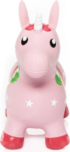 Zábavné nafukovací hopsadlo Skippy Unicorn v růžové barvě je ideální pro malé děti, které milují skákání a pohyb. Díky ergonomickému tvaru s ušima jako držadly nabízí bezpečnou a pohodlnou jízdu doma i na zahradě. Hračka podporuje rozvoj motoriky, rovnováhy a posiluje svaly, přičemž je bez ftalátů a snadno se udržuje. Součástí je praktická pumpička pro rychlé nafouknutí i vyfouknutí.
