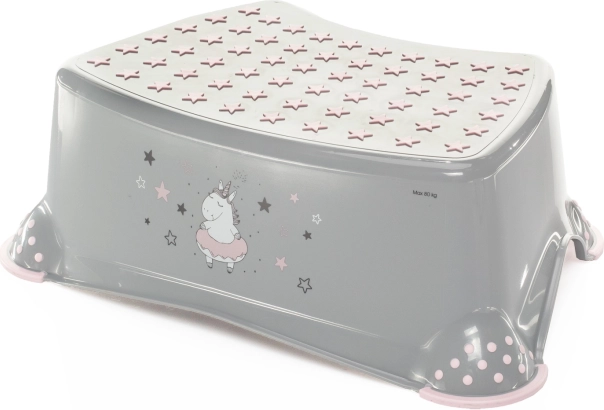 Dopřejte dětem samostatnost při každodenní hygieně. Dětský stupínek Unicorn v šedo‑růžové barevné kombinaci má bezpečnou protiskluzovou úpravu shora i zespodu, takže pevně drží na podlaze a zároveň brání klouzání nohou. Roztomilý motiv jednorožce motivuje děti k pravidelnému mytí rukou a samostatnému používání toalety.