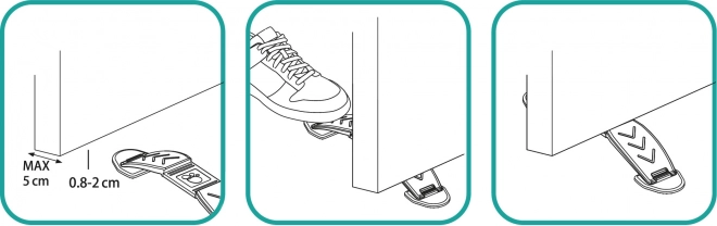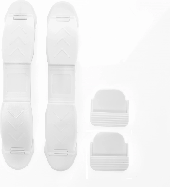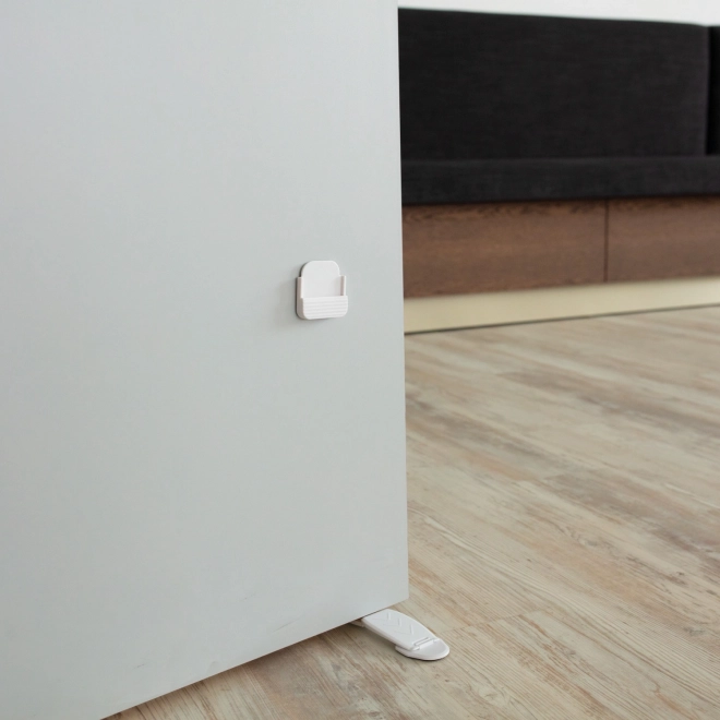 Produkt je kompatibilní s většinou vnitřních dveří se světlostí spodní hrany 0,8–2 cm. V balení najdete 2 zarážky a 2 praktické závěsné držáky na klíče, abyste je měli vždy po ruce. Bezpečné složení bez škodlivých látek (BPA a ftalátů) zaručuje klidné používání v dětském prostředí.