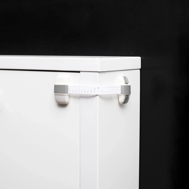 Praktický univerzální zámek chrání děti před nechtěným otevřením skříněk, zásuvek, lednic či toalet. Díky nastavitelné délce, jednoduché instalaci s 3M lepidlem a dvěma bezpečnostním tlačítkům je pro dospělé pohodlný, ale pro děti obtížně otevřitelný. Materiál je bez BPA a ftalátů.