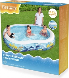 Užijte si léto s prostorným nafukovacím bazénem BESTWAY s motivem oceánu. Díky oválnému tvaru, širokým stěnám a stabilní komorové konstrukci je ideální pro bezpečné vodní radovánky dětí. Vyroben z odolného vinylu, nabízí rychlé vypuštění a snadné skladování.