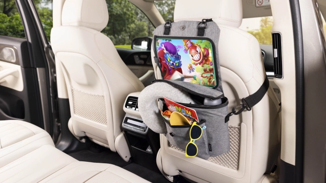 Tento promyšlený organizér na sedadlo vám pomůže zkrotit chaos na zadních sedadlech. Díky chytrému rozvržení kapes budete mít vše pro děti i cestování vždy po ruce – od lahviček a ubrousků až po hračky a svačiny. Integrovaný držák na tablet 11,5" udrží malé cestovatele zabavené i na delších trasách.