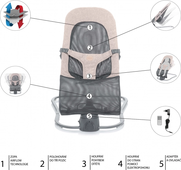 Lehká a kompaktní dětská lehačka ZOPA Moyo Air pro miminka od narození do 9 kg nabízí proudění vzduchu díky síťované výplni, 3 polohy sklonu a elektrické i přirozené houpání s 5 rychlostmi. Stabiln... Zobrazit více