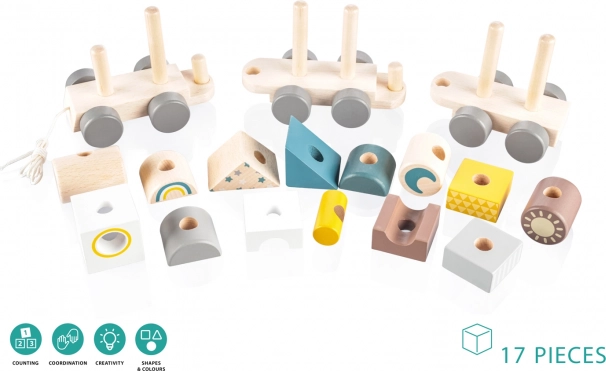 Dřevěný tahací vláček pro děti rozvíjí jemnou motoriku a kreativitu. Bezpečné materiály s možností sběru a tahání.