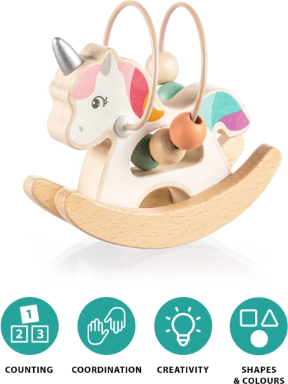 Dřevěný aktivity jednorožec je navržen tak, aby zabavil a zároveň učil. Děti mohou tuto kompaktní hračku snadno uchopit, což z ní činí ideálního společníka pro jejich dobrodružství. Kromě klasického houpání nabízí jednorožec i interaktivní prvky, které rozvíjejí koordinaci a kreativitu.