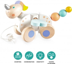 Dřevěná tahací hračka Jednorožec je skvělým parťákem pro děti při jejich prvních krůčcích. Díky jednoduchému mechanismu při chůzi třepotá křídla a ocas jednorožce, což děti zabaví na dlouhé hodiny.