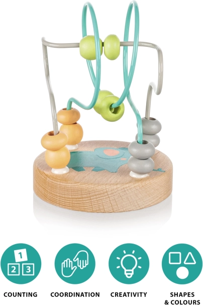Toto dřevěné korálkové bludiště je ideální pro každé dítě, které chce objevovat svět pomocí svých smyslů. Je navrženo tak, aby pomohlo rozvíijet jemnou motoriku, koordinaci rukou a očí a posílilo prostorovou představivost. Všechny komponenty jsou vyrobeny z kvalitního dřeva a barvy na vodní bázi zajišťují bezpečnou hru.
