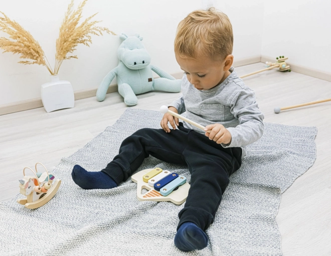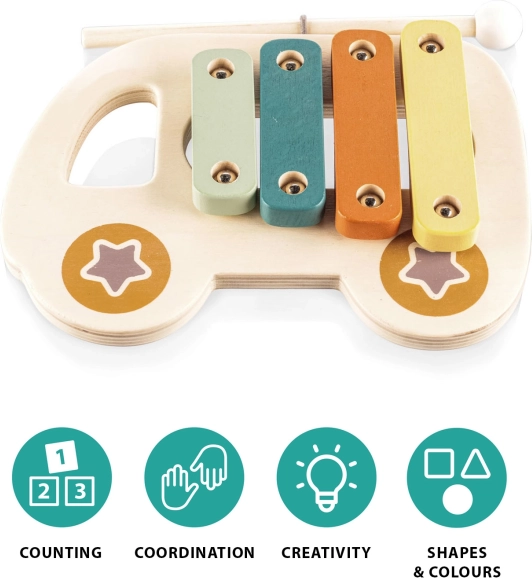 Xylofon pomáhá rozvíjet hudební sluch a motorické schopnosti dětí. Vyrobeno z kvalitního přírodního dřeva s ekologickými barvami, hračka podporuje představivost a kreativitu.