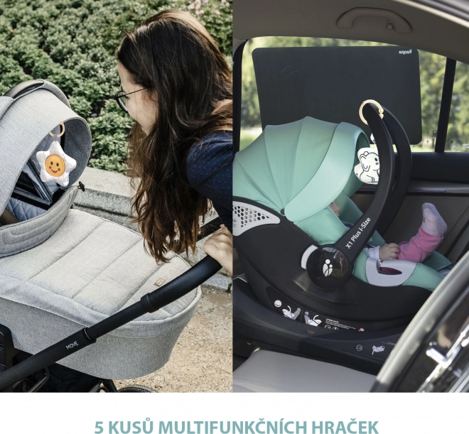 - Odnímatelné hračky s chrastítkem pro variabilní použití