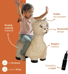 Veselé nafukovací hopsadlo Skippy ve tvaru zvířátka přináší dětem radost z pohybu a podporuje zdravý vývoj. Díky ergonomickému tvaru s uchy pro bezpečné držení je skákání pohodlné doma i na zahradě. Součástí balení je praktická pumpička, takže hopsadlo snadno nafouknete i vyfouknete. Bez obsahu ftalátů, vhodné od 18 měsíců, nosnost až 50 kg.